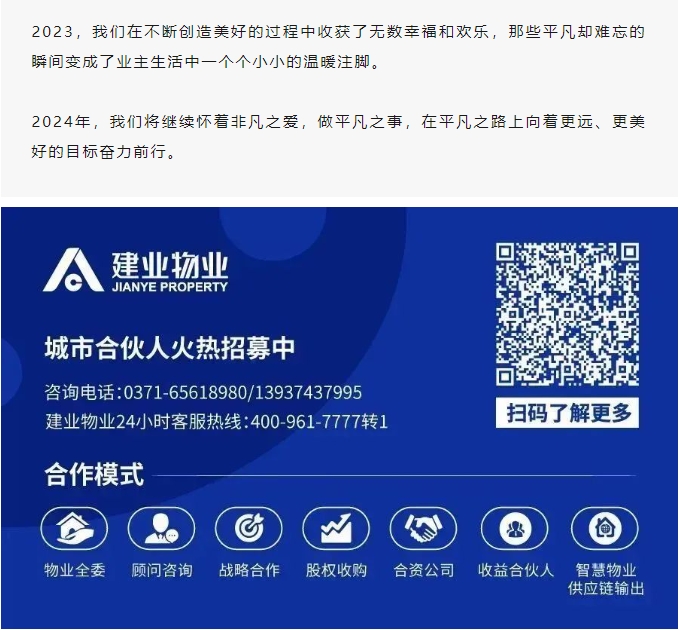 這一年,建業(yè)物業(yè)人在平凡的崗位上,不斷創(chuàng)造美好,以更好的面貌來(lái)迎接建業(yè)物業(yè)的第30年。