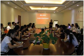 運營管理部相關(guān)負責(zé)人針對客服類課題,進行了專業(yè)的指導(dǎo)培訓(xùn)??偣矩攧?wù)部經(jīng)理胡利平對營改增之后相關(guān)財務(wù)知識進行解讀。最后,副總經(jīng)理張禮輝作總結(jié)性發(fā)言,張總強調(diào):行政專員作為上傳下達的中樞性崗位,一定要提高自身專業(yè)能力,服務(wù)并指導(dǎo)好各自管轄的服務(wù)中心。