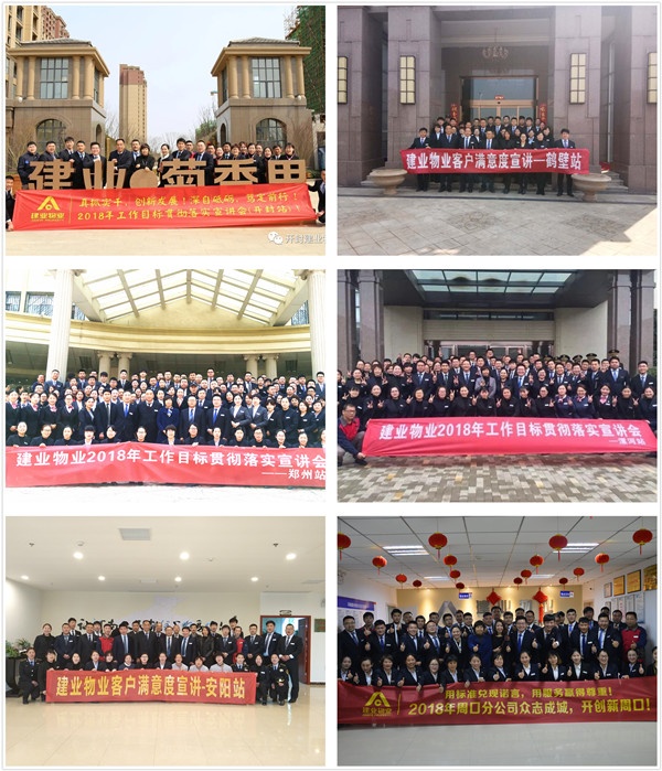 早春三月,萬物生長。為持續(xù)提升建業(yè)物業(yè)服務(wù)品質(zhì)、提高客戶滿意度,打贏2018年建業(yè)物業(yè)各項(xiàng)攻堅(jiān)戰(zhàn), 3月13日-26日,物業(yè)總公司各職能部門總經(jīng)理在建業(yè)物業(yè)總經(jīng)理許靜、副總經(jīng)理張禮輝的帶領(lǐng)下,兵分兩路,深入一線,在各地市分公司共計(jì)開展了十八場2018年工作目標(biāo)貫徹落實(shí)宣講大會。每場宣講大會,各分公司總經(jīng)理、職能部門全體員工、各小區(qū)經(jīng)理,管家、接待及維修、禮兵、保潔等各歸口主管人員均悉數(shù)到場,認(rèn)真聆聽,用心體會,累計(jì)參會人員達(dá)1200余人。