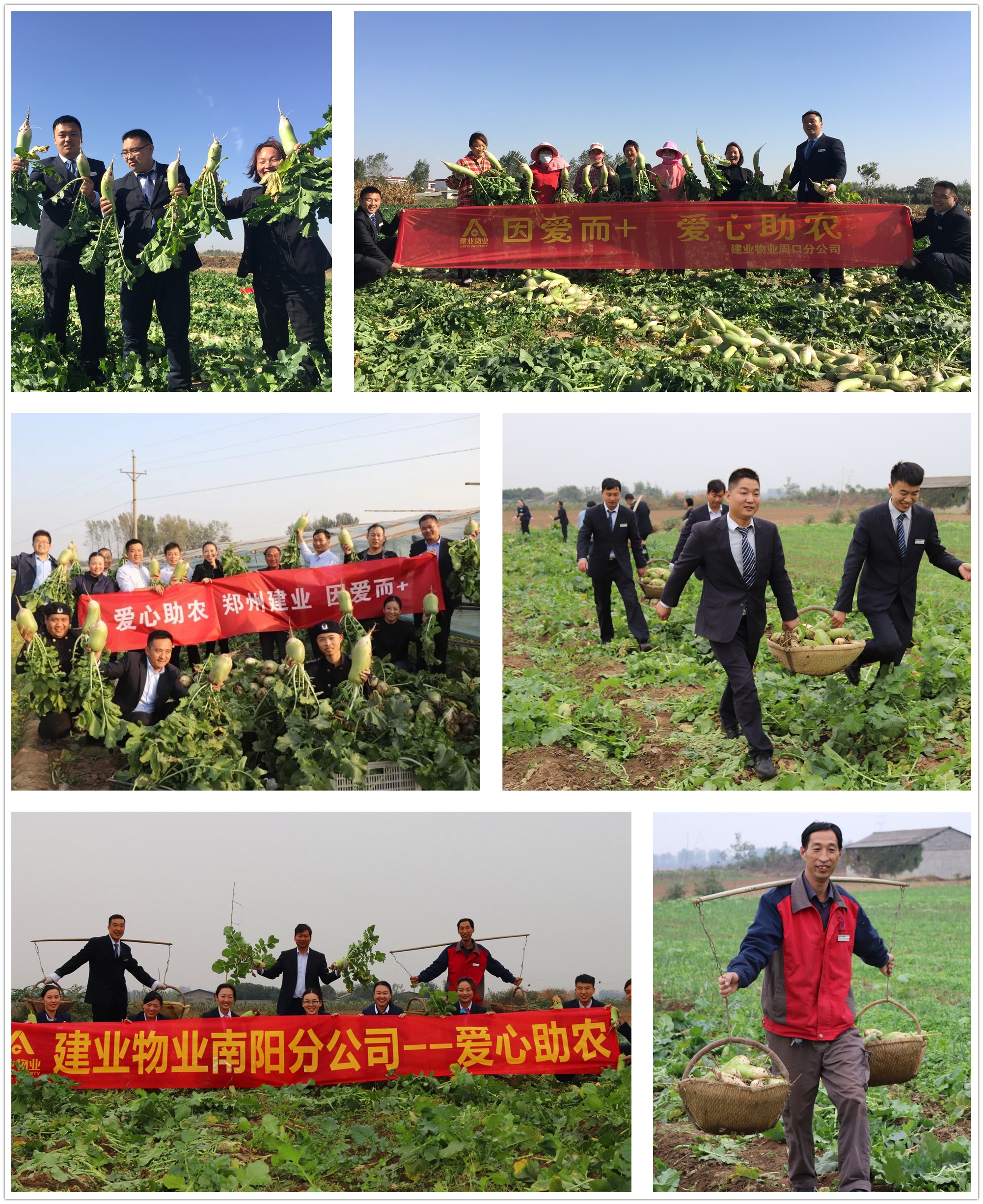 2018年秋冬,河南部分地區(qū)蘿卜、白菜、南瓜等農(nóng)產(chǎn)品滯銷的消息牽動著建業(yè)物業(yè)人的心。為解決地方農(nóng)民賣菜難的問題,建業(yè)物業(yè)十余個分公司紛紛向農(nóng)戶伸出援手,積極認購滯銷農(nóng)產(chǎn)品,先后開展愛心助農(nóng)公益活動92場,助銷蘿卜、白菜、南瓜等農(nóng)產(chǎn)品216390斤,惠及33362戶業(yè)主。