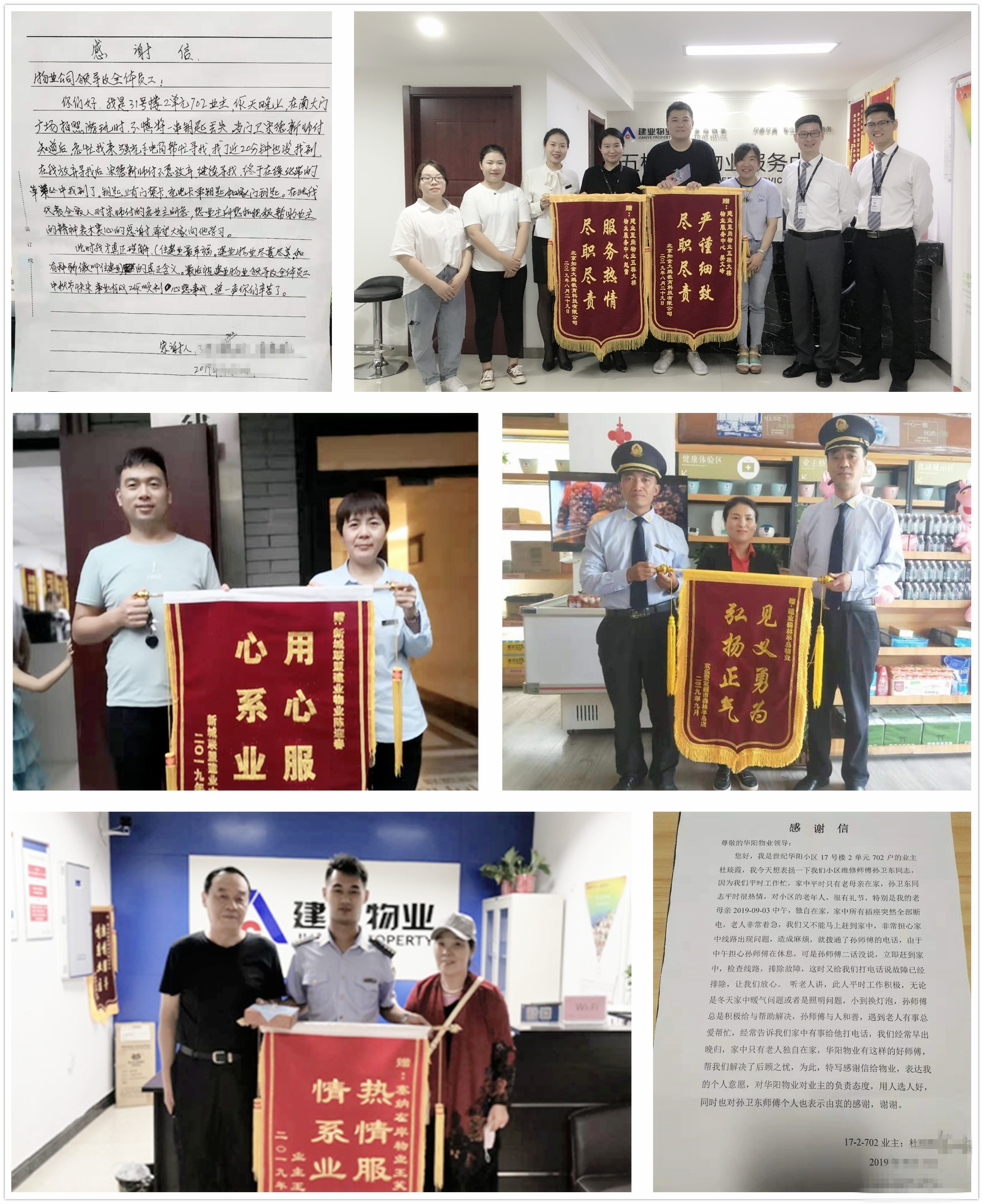 金秋九月,丹桂飄香。建業(yè)物業(yè)全體員工不僅持續(xù)地為業(yè)主打造舒適的人居環(huán)境,還積極主動地為業(yè)主提供至誠服務(wù)。本月,我們收到拾金不昧、技術(shù)高超、服務(wù)熱情、助人為樂等好人好事共480例,其中,收到錦旗97面、感謝信143封、致電感謝及其他240起。