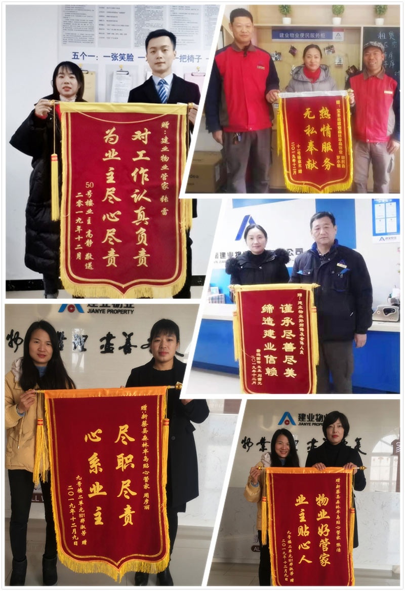嚴(yán)寒十二月,寒風(fēng)刺骨。建業(yè)物業(yè)全體員工提供的暖心服務(wù)卻能抵御寒冬,讓業(yè)主感受到春天般的溫暖。本月,我們收到拾金不昧、技術(shù)高超、服務(wù)熱情、助人為樂等好人好事共405例,其中,收到錦旗113面、感謝信146封、致電感謝及其他形式的點(diǎn)贊146起。