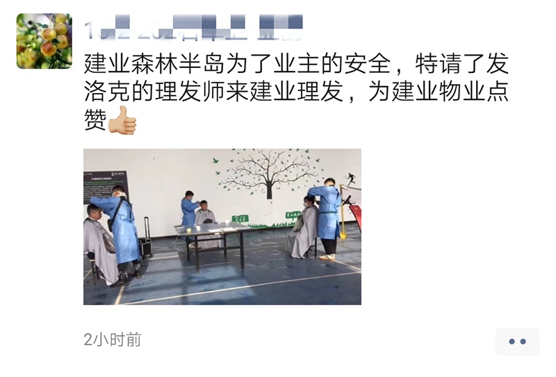 疫情之下,建業(yè)物業(yè)暖心守護(hù),不等待、不停留,主動(dòng)關(guān)懷業(yè)主的需求,將那些愿望一點(diǎn)點(diǎn)的完成,讓我們一起用簡(jiǎn)單的理發(fā)民俗,迎接春暖花來(lái),從頭開(kāi)始,將美好延續(xù)。