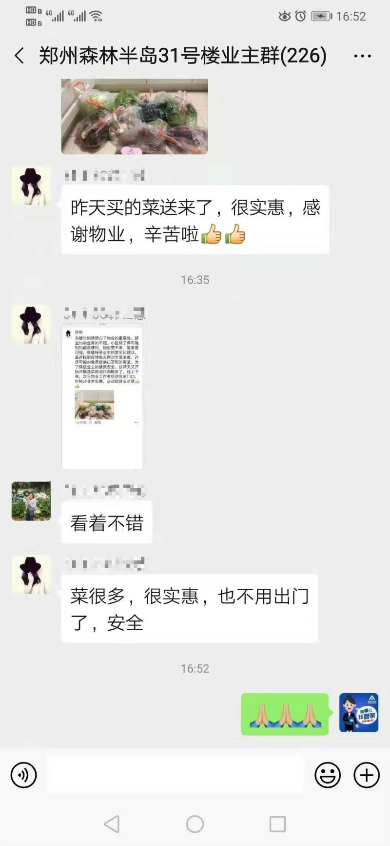 據(jù)不完全統(tǒng)計(jì),截至2月7日上午,建業(yè)物業(yè)累計(jì)為業(yè)主上門(mén)配送雞蛋2687件、饅頭2110件,水果套餐3192斤,水餃、湯圓2907件、小麥面粉1216斤,綠色基地小番茄2005斤,蔬菜禮包63448斤,高品質(zhì)產(chǎn)品和貼心服務(wù)使得業(yè)主好評(píng)如潮。