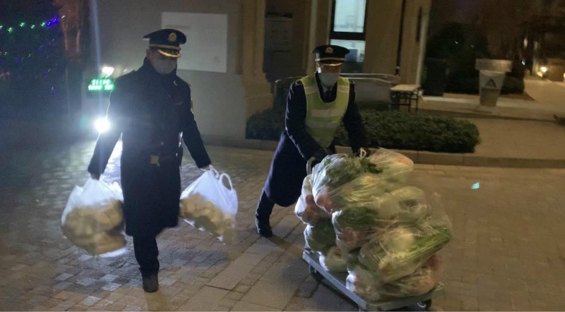2月3日,綠色基地運(yùn)送蔬菜的車輛在路上遇上層層管制,要到晚上十一點(diǎn)左右才能送到鄭州市建業(yè)花園里小區(qū)。想到有部分業(yè)主提到自己家中已沒(méi)有存糧,貼心管家劉夢(mèng)娜、值班師傅弓寶峰和禮兵閆剛便一直等到蔬菜送達(dá),小跑著去核對(duì)、確認(rèn)菜品,并將分裝好的蔬菜連夜悄悄地掛在業(yè)主家門(mén)把手上。