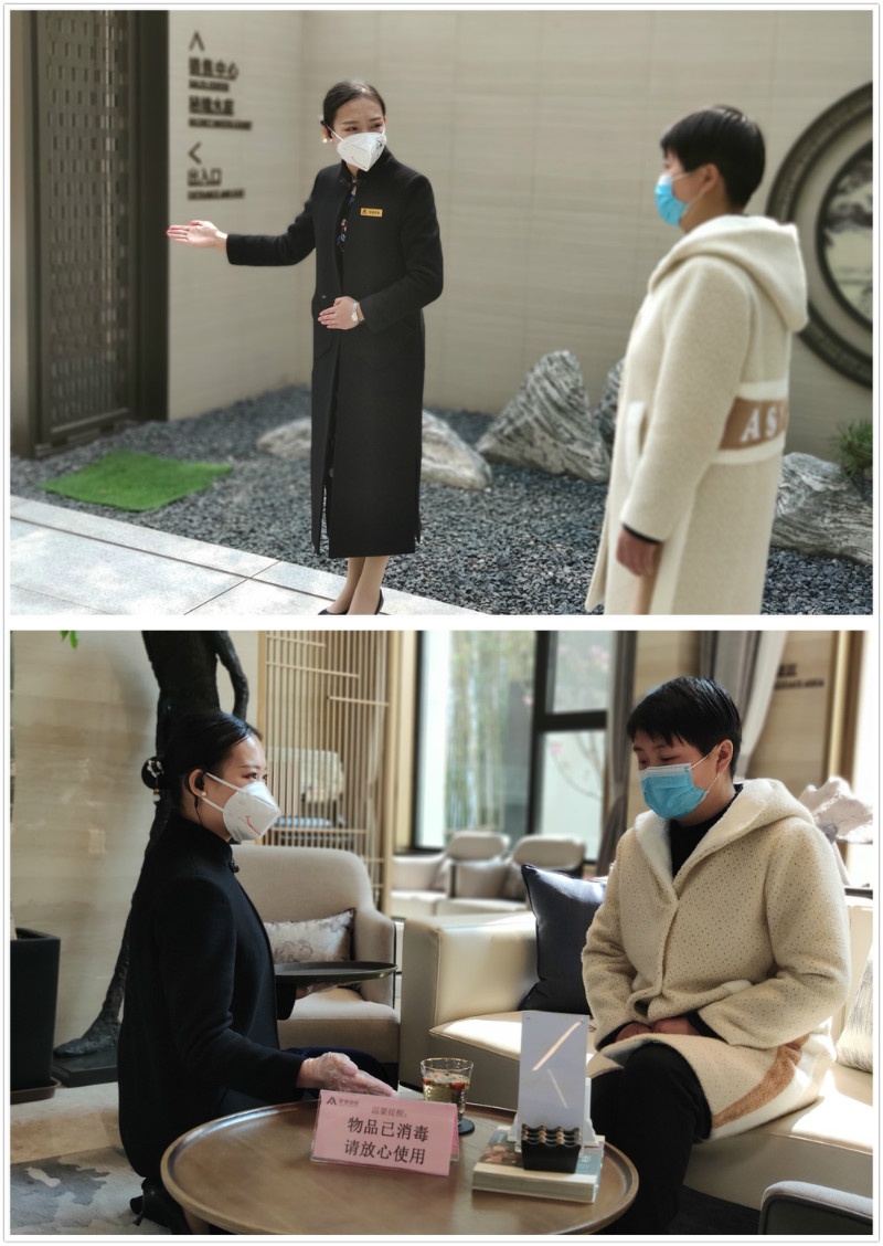 健康出品:為避免接觸,吧臺設(shè)置專人專崗,客用杯具全部改成一次性杯具。各個案場結(jié)合疫情期間預(yù)防方案和實際情況推出雪梨、銀耳、山藥、白茶、金銀花等飲品和獨立包裝的茶點。