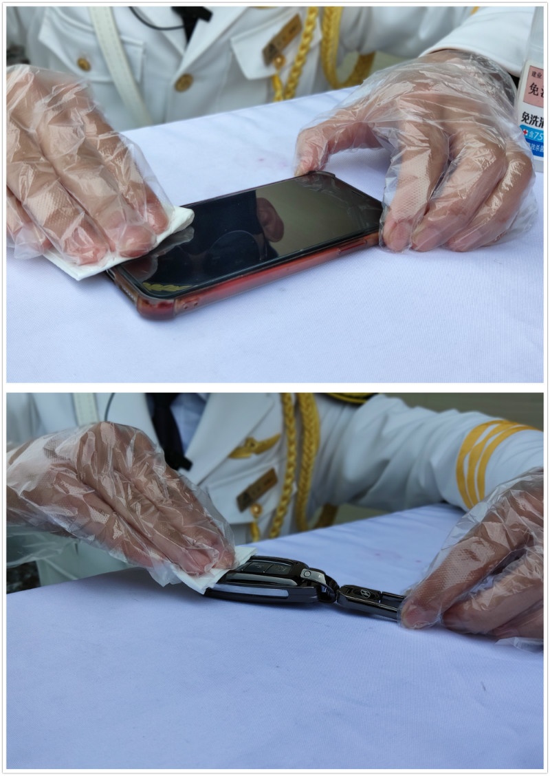 隨身物品消毒:對客戶隨身攜帶、易暴露在外的手機、車鑰匙、提包等物品提供貼心消毒服務(wù)。