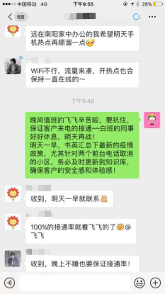 其實(shí),遠(yuǎn)程辦公的實(shí)現(xiàn)也遇到了諸多困難。為保證客戶來電的正常接通,呼叫指揮中心的每一位坐席都想盡辦法,升級(jí)手機(jī)套餐連熱點(diǎn)、換路由器、借電腦……凌晨2點(diǎn),最后一名坐席安裝系統(tǒng)測(cè)試成功。緊接著,大家便連夜排班,從2月1日開始,全員上線,在各自長(zhǎng)期封閉的家中,和小區(qū)一線物業(yè)人一起,共同奮戰(zhàn)!