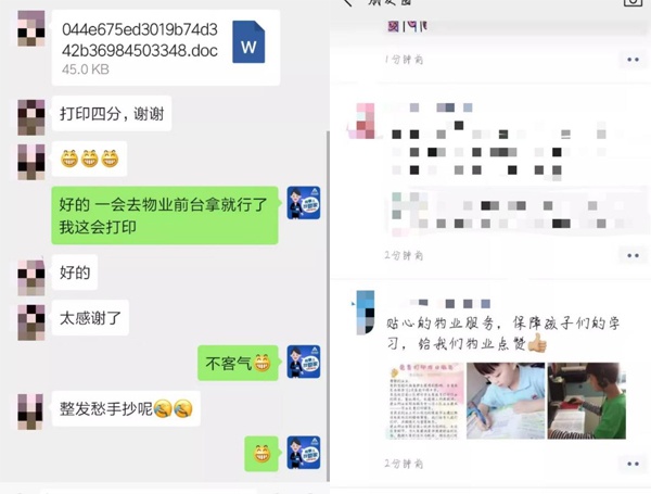 線上要上課,線下要做作業(yè),但是疫情期間打印店早已閉門休業(yè),面對各科老師布置的作業(yè),家長們齊齊上陣為孩子抄寫作業(yè)題目。建業(yè)物業(yè)敏銳的察覺到業(yè)主們的需求,立即推出打印作業(yè)服務(wù),減輕業(yè)主負擔(dān)。