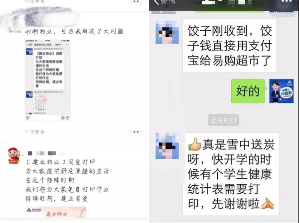 “這項服務(wù)就是及時雨,就是雪中送炭!外面打印店都沒開門,建業(yè)物業(yè)真的幫我們解決了一大難題?!?br />