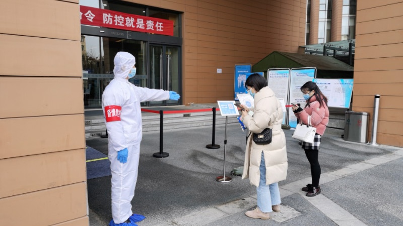 建業(yè)至尚商業(yè)物業(yè)的工作人員已經(jīng)就位,正在嚴(yán)控復(fù)工人員有序進(jìn)入大樓。