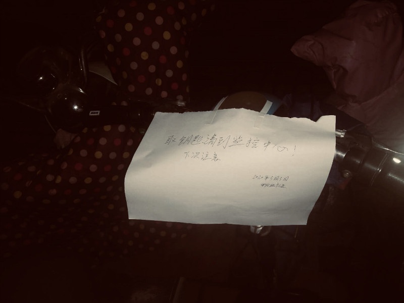 信陽建業(yè)森林半島禮兵中隊(duì)長(zhǎng)王松夜晚巡邏時(shí)發(fā)現(xiàn)一輛電動(dòng)車的鑰匙忘記拔了,他便替業(yè)主收起鑰匙,并留下字條,然后又繼續(xù)進(jìn)行日常的巡邏。