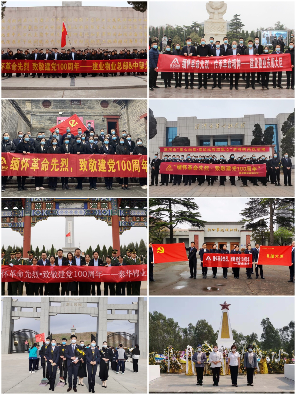 天地英雄氣,千秋尚凜然。英雄先烈是民族最閃亮的坐標(biāo),是我們不斷開(kāi)拓進(jìn)取的勇氣與力量所在。清明節(jié)期間,建業(yè)物業(yè)河南18地市及海南、新疆、河北等地聯(lián)動(dòng)開(kāi)展了“緬懷革命先烈,致敬建黨100周年”主題活動(dòng)。建業(yè)物業(yè)黨員及員工代表通過(guò)祭掃英烈、參觀烈士紀(jì)念館、聆聽(tīng)革命故事、學(xué)習(xí)黨史等活動(dòng),牢記歷史,繼承革命優(yōu)良傳統(tǒng),在砥礪前行中不斷傳承革命精神。