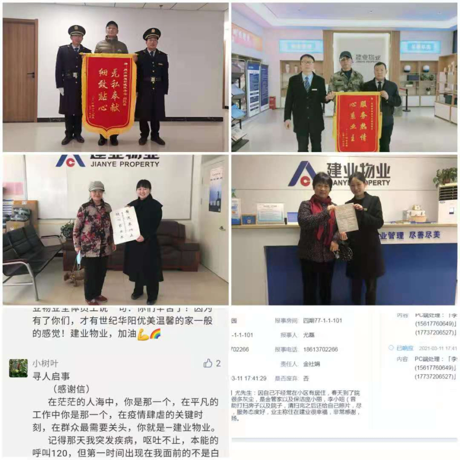 事后,李女士特意打電話對劉治幸提出表揚(yáng)。電話中,她真誠感謝建業(yè)物業(yè)全體工作人員,感謝他們的無私付出。