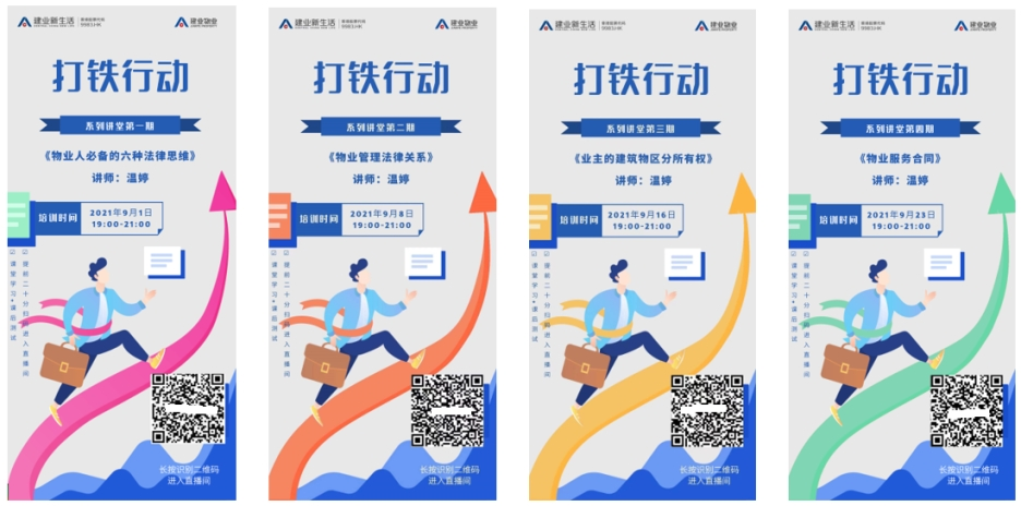 9月23日,建業(yè)新生活集團物業(yè)服務(wù)事業(yè)部“打鐵行動”系列培訓(xùn)直播課順利收官。本次系列培訓(xùn)于9月1日正式啟動,旨在夯實物業(yè)服務(wù)事業(yè)部全體員工作業(yè)基礎(chǔ),強化員工法律思維,賦能一線業(yè)務(wù)開展,滿足“打鐵還需自身硬”的工作要求。培訓(xùn)前后共組織4場累計8小時+的系列線上直播課程,貫穿整月,線上線下覆蓋6萬余人次,物業(yè)服務(wù)事業(yè)部各分支機構(gòu)積極組織員工線下統(tǒng)一觀看課程直播,公司學(xué)習氛圍濃厚。