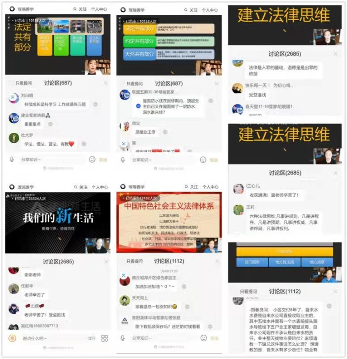 本次系列直播課程由建業(yè)新生活集團助理總裁兼建業(yè)物業(yè)總經(jīng)理溫婷講授,課程包括《物業(yè)人必備的六種法律思維》《物業(yè)管理法律關(guān)系》《業(yè)主的建筑物區(qū)分所有權(quán)》以及《物業(yè)服務(wù)合同》等四大課題。溫總?cè)轿黄饰隽宋飿I(yè)服務(wù)工作中存在的法律關(guān)系,結(jié)合實際案例剖析背后的法律邏輯,幫助一線員工提升法律意識、掌握法律知識,促進員工深刻理解并嚴格按照法律法規(guī)辦事,學(xué)會運用法律武器維護自身權(quán)益。培訓(xùn)過程中,溫總通過案例分析、知識分享、線上互動等教學(xué)方式,加深學(xué)員對于所學(xué)知識的理解,強調(diào)融會貫通、學(xué)以致用,對物業(yè)實際工作開展有極大幫助。在直播平臺上,學(xué)員們積極參與互動討論,咨詢工作中的難點問題,尋求更好的解決思路,溫總的耐心解答與精彩授課令學(xué)員們受益匪淺。