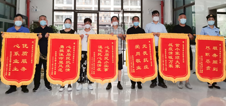 在小區(qū)物業(yè)和業(yè)主的共同努力下,民權(quán)·雙溪灣做到了“零感染、零密接”,迎來(lái)了解封時(shí)刻。兩天后,民權(quán)·雙溪灣物業(yè)服務(wù)中心收到了業(yè)主自發(fā)送來(lái)的六面錦旗,他們以此表達(dá)對(duì)所有物業(yè)工作人員的認(rèn)可和感謝。