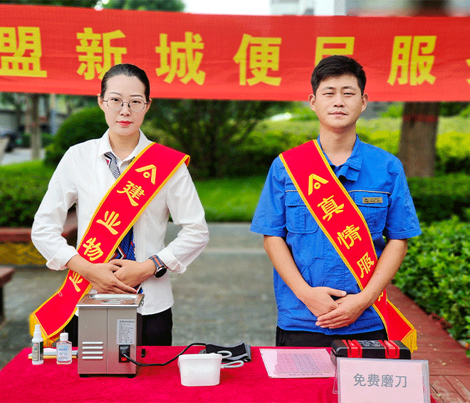生活因驚喜泛起漣漪,日子因陪伴精彩紛呈 建業(yè)物業(yè)聚焦業(yè)主多元生活需求 將陪伴、驚喜、便利滲透到生活的方方面面 為此,建業(yè)物業(yè)人 定期開(kāi)展形式多樣的星級(jí)便民服務(wù) 主動(dòng)化身為多種角色,上演與業(yè)主的精彩互動(dòng) 01“傳統(tǒng)手藝達(dá)人” 雖歷經(jīng)歲月變遷,但傳統(tǒng)手藝仍然頗受歡迎 經(jīng)過(guò)一番手腳麻利的上下翻飛 建業(yè)物業(yè)人用專(zhuān)業(yè)工具 將鈍口的刀和剪子磨得光亮鋒利 方便業(yè)主的日常起居 照亮生活的一餐一食,一絲一縷
