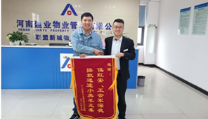 六月,艷陽如火,蟬鳴如潮。建業(yè)物業(yè)人滿懷如火的熱情,用服務為業(yè)主送來絲絲舒暢。六月份全省在管小區(qū)涌現(xiàn)出好人好事共計284例,其中收到錦旗65面,表揚信127封,來電感謝及其他92例。 鏡頭一: 6月2日9時許,平頂山·十八城貼心管家王明濤接到7號樓尹女士的緊急電話,稱自己的丈夫腿受傷已無法動彈,等不及救護車過來了。王明濤和禮兵中隊長白洋洋、巡邏禮兵安東火速趕到業(yè)主家中,一邊保護王先生腿部不再受到二度傷害,一邊將王先生背下樓并送往醫(yī)院。因就診及時,病人病情得到及時控制,并無大礙。 次日,尹女士特地讓孩子代表夫婦二人送來一面印有“智慧果敢加神速,為業(yè)主排憂解難”字樣的錦旗,以此表達對建業(yè)物業(yè)的感激之情。 鏡頭二