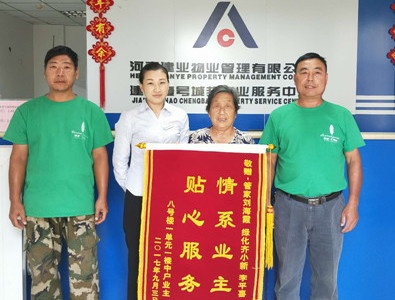 暮秋9月,秋風送爽,平凡的物業(yè)人,在自己的崗位上至真至誠地服務著每一位業(yè)主。在建業(yè)物業(yè)所服務的社區(qū)里,涌現(xiàn)出一件件感人至深的好人好事,溫暖著社區(qū)的每一位業(yè)主9月,我們收到拾金不昧、助人為樂、技術(shù)高超、心系業(yè)主、服務熱情等好人好事54例,其中,錦旗21面、感謝信14封、致電致謝18例。 鏡頭一: 9月2日下午6點左右,濟源·壹號城邦保潔張素玲打掃衛(wèi)生間時,在拐角處撿到一只錢包,錢包內(nèi)有身份證、駕駛證、教師證重要證件,并有現(xiàn)金若干。她毫不猶豫地上交錢包,并在管家和維修工的協(xié)助下,通過證件找到失主,將錢包歸還,還婉言謝絕了業(yè)主的現(xiàn)金酬謝。 第二天,閆先生拿著一面錦旗來到物業(yè)辦公室,以此感謝張素玲保潔員拾金不昧的行為,對建業(yè)物業(yè)表達認可! 鏡頭二: 9月2日