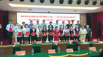 比賽現(xiàn)場 建業(yè)物業(yè)選手張輝(一排右四)、宋超凡(一排右六)上臺領(lǐng)獎(jiǎng) 建業(yè)物業(yè)助理總經(jīng)理劉德軍(右一) 領(lǐng)取建業(yè)·聯(lián)盟新城五星級住宅小區(qū)獎(jiǎng)牌 建業(yè)物業(yè)運(yùn)營管理部總經(jīng)理張藝(一排左五) 領(lǐng)取建業(yè)·總部港五星級住宅小區(qū)(辦公寫字樓)獎(jiǎng)牌 8月24日,由鄭州市物業(yè)管理協(xié)會主辦、《河南電視臺》文化觀察欄目組、《大河報(bào)》大河樓市欄目組等新聞媒體支持的鄭州市物業(yè)管理行業(yè)“我誠信 我光榮”演講比賽決賽在鄭州市房管局大樓四樓會議室隆重召開。 建業(yè)物業(yè)從層層選拔中脫穎而出的2名選手參加了本次決賽,在競爭激烈的比賽現(xiàn)場,建業(yè)物業(yè)代表隊(duì)選手宋超凡和建業(yè)至尚物業(yè)代表