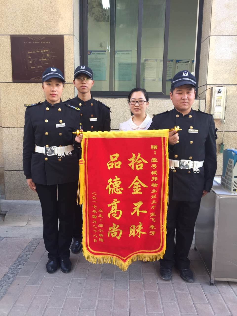 ——建業(yè)物業(yè)2017年5月份好人好事通稿 五月,天氣炎熱,建業(yè)物業(yè)全體員工不僅持續(xù)為業(yè)主打造舒適的人居環(huán)境,還積極主動(dòng)為業(yè)主提供幫助,此間涌現(xiàn)了一件件感人至深的好人好事。5月,我們收到拾金不昧、技術(shù)高超、服務(wù)熱情、智勇擒賊、助人為樂(lè)等多種類(lèi)型的好人好事75例,其中錦旗21例,感謝信17例,電話表?yè)P(yáng)37例。 鏡頭一: 4月29日凌晨3:00,“轟”的一聲巨響引起開(kāi)封·建業(yè)熙和府禮兵李永斌、朱峰、王飛等人的高度重視,見(jiàn)一輛大貨車(chē)撞向小區(qū)對(duì)面干部修養(yǎng)所的墻后迅速逃離現(xiàn)場(chǎng)。禮兵李永斌見(jiàn)勢(shì),二話沒(méi)說(shuō)騎著電動(dòng)車(chē)就追了上去,朱峰等人立刻聯(lián)系干休所相關(guān)負(fù)責(zé)人。禮兵雖然沒(méi)有追上該車(chē),但把車(chē)牌號(hào)牢牢記下。通過(guò)警方的調(diào)查,最終確定嫌疑人身份,減少了干休所的損失。為此干休所特派代